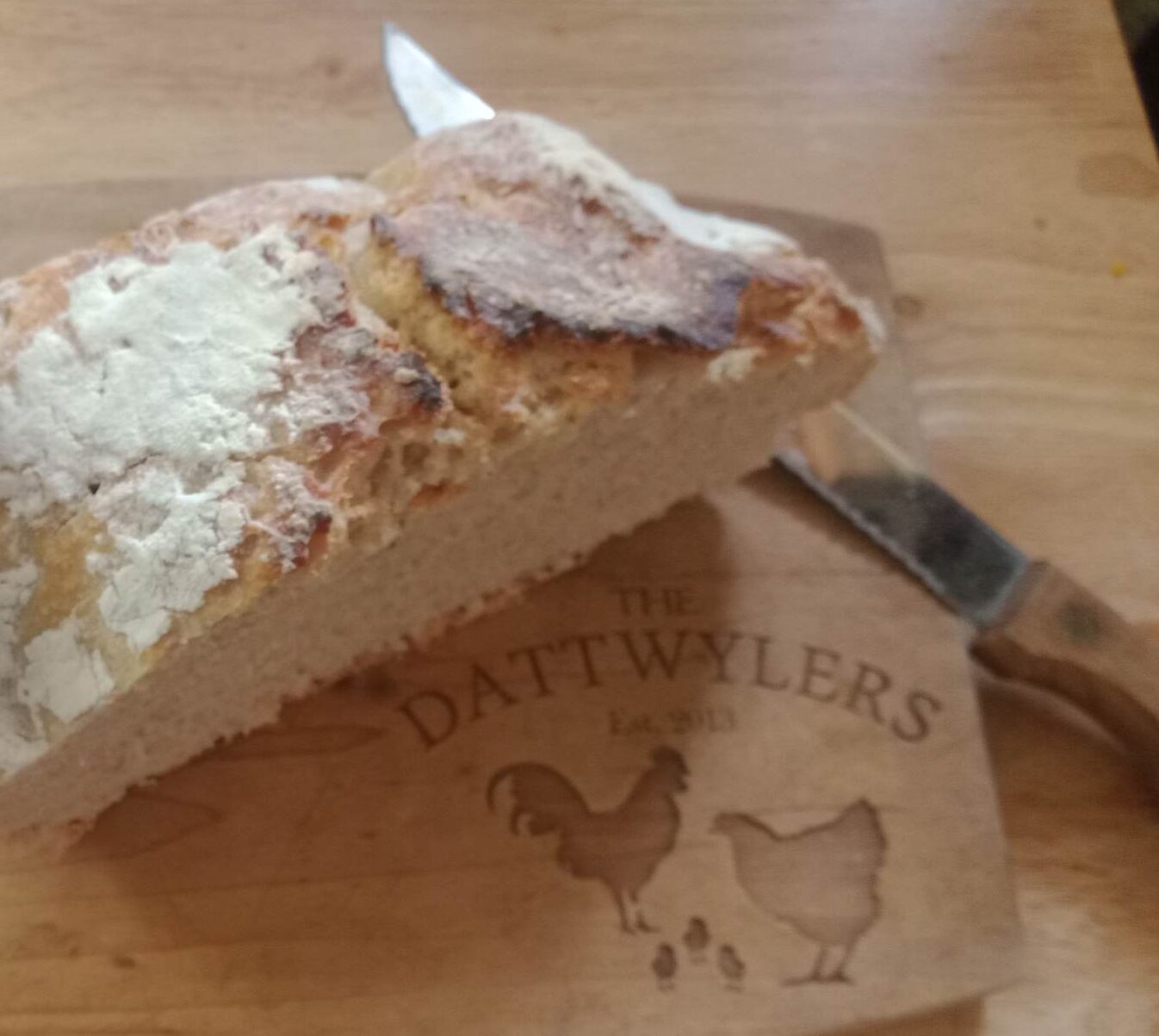 - Remove top of dutch oven and continue to bake until the bread is golden brown and sounds hollow when tapped on the bottom.